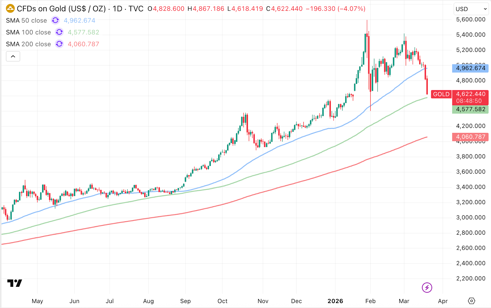De Iran-oorlog blijft voor volatiliteit en met name onzekerheid zorgen op de financiële markten. Normaal gesproken is dat het ideale recept voor een stijging van de goudprijs, maar de afgelopen weken is dat niet het geval. Ook deze week zien we goud vooral meegaan in de algehele malaise die heerst op Wall Street.